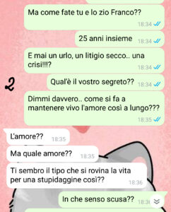 “Avete presente quelle coppie che sembrano indistruttibili? Quelle che arrivano alle nozze d’argento senza un capello fuori posto, che si scambiano sorrisi cordiali alle cene di famiglia e che non hanno mai una discussione pubblica? Ecco, questi sono mia zia Adele e zio Franco, da sempre re e regina dell’Olimpo della stabilità nella mia famiglia!