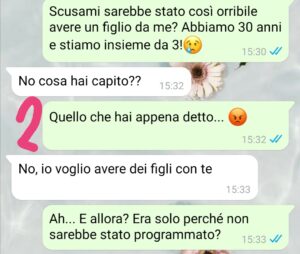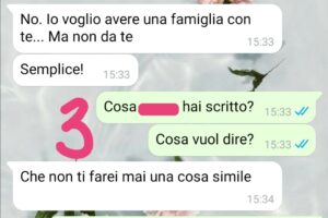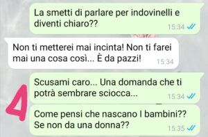 Scrivo subito al mio fidanzato, ho bisogno di condividere il momento con lui…e la sua risposta è del tutto inaspettata. Guardate cosa mi scrive, lo leggerete già nel primo screen. Ma questo, fidatevi, è ancora niente…il più arriva dopo…
