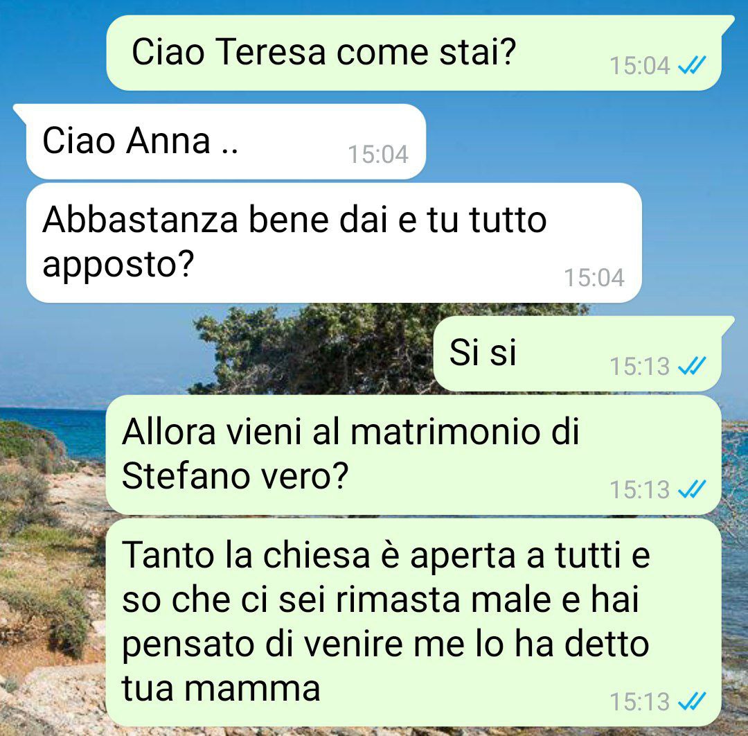 “Ciao a tutti mi chiamo Anna e purtroppo vi scrivo per un motivo non bello: mio figlio Stefano si sposa.