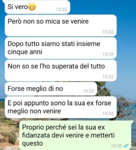Lui l’ha lasciata perché lei aveva fatto gli occhi dolci a un suo amico e dice che chissà cosa è successo, ma io non ci credo.