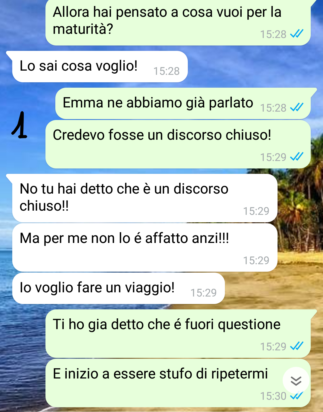Emma da circa un anno mi tormenta perché si è messa in testa di voler fare un viaggio per festeggiare la maturità e la fine della scuola superiore. E non un viaggio qualunque: un viaggio lungo e costoso che la farebbe stare via almeno un mese se non di più!