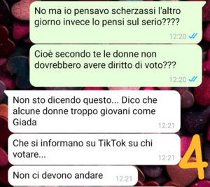Questo sarebbe stato il primo voto di Giada quindi e io ero contenta, soprattutto dopo aver visto il film della Cortellesi, ho capito quanto sia importante il voto per noi donne.
