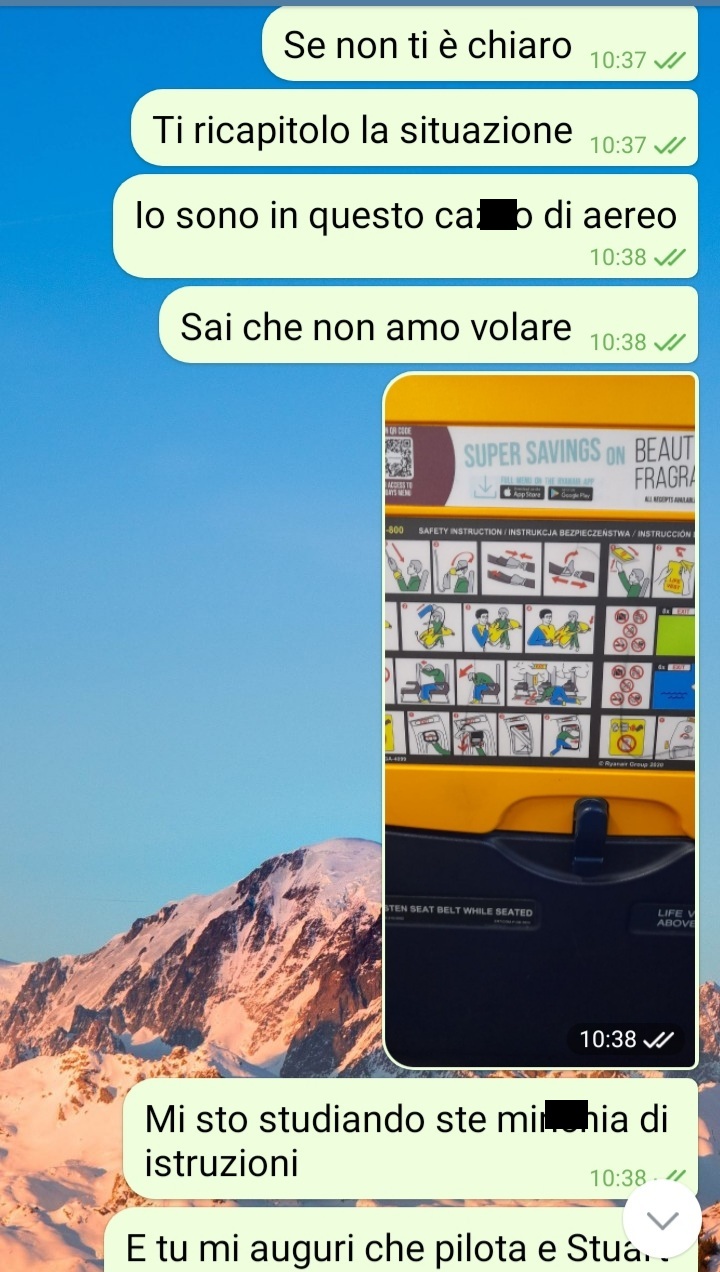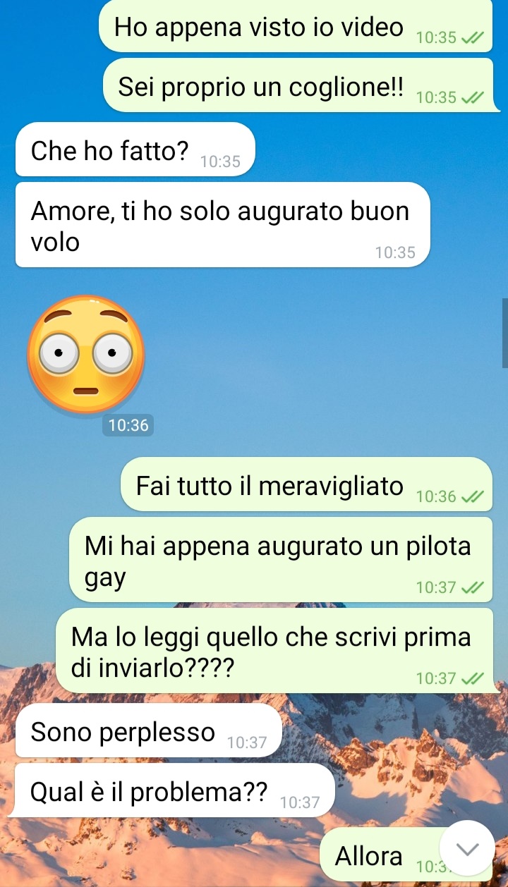 Cosa avrei dovuto fare? Allora immaginatemi chiusa in un aereo. C’era un caldo infernale, non so perché ancora non accendevano i condizionatori. Avevo spiaccicati in faccia le istruzioni su cosa fare in caso di problemi. Me li stavo studiando e il mio fidanzato mi manda il video di un gruppo di idioti che si dimenano e cantano inneggiando a deviazioni e perversione. È chiaro che ho ribadito qual è la retta via e quale no. Appena sono atterrata ho scritto al mio ragazzo dicendogli che era finita.”