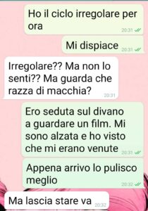 “Ho sporcato il divano del mio compagno. Mi sono venute all’improvviso senza che me ne accorgessi.