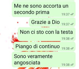 Ho davvero bisogno di aiuto. Me ne sono resa conto l’altro giorno quando ho rischiato di fare seriamente del male a mia figlia e ho avuto una paura enorme. Enorme. E ce l’ho ancora. Devo chiedere aiuto e voglio dare la bambina a una famiglia che mi possa aiutare a gestirla in questo momento in cui ho davvero la testa troppo incasinata, il cuore a pezzi. La mia famiglia mi ha abbandonato, ho un lavoro che però non riesco a fare bene come prima e che mi sta stancando troppo. Il padre della bambina, lasciamo stare… Non so più che strada seguire e sono tanto sola. Scusate lo sfogo. Spero mi possiate sostenere un pochino e darmi qualche indicazione buona da seguire. Buona serata.”