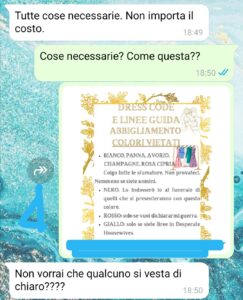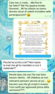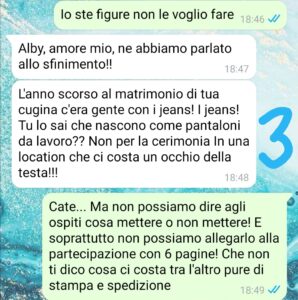 Perché lei a un certo punto se ne viene fuori con una richiesta assurda. Ma lei ci tiene talmente tanto che vuole inserirla nelle partecipazioni, quindi comunicare questa cosa nelle invito a nozze che arriverà a amici e parenti.