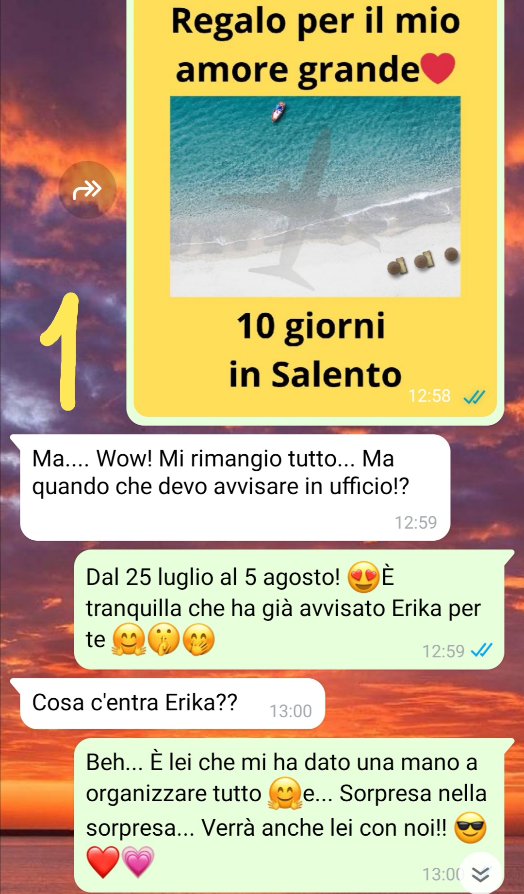 Ma dato che io sono un po’ imbranato a prenotare le cose online e a scegliere il posto più carino ecc…chiedo aiuto alla migliore amica di Nadia, Erika, che invece è una super esperta in queste cose. Infatti in meno di un due giorni mi aiuta a organizzare tutto…e quando stiamo per finalizzare il tutto succede una cosa che io non ritenevo grave.