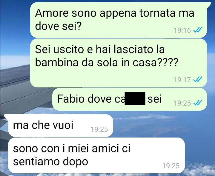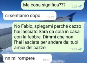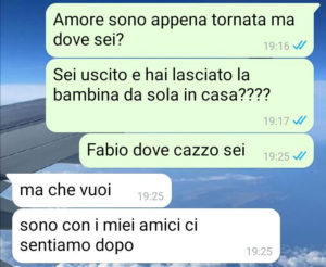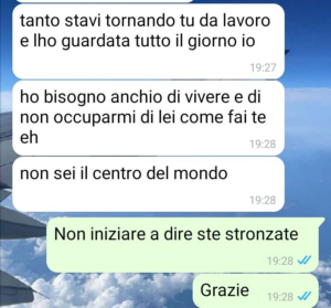 “Ciao SpunteBlu. Questa è la chat di due settimane fa con il mio ormai ex-compagno Fabio.