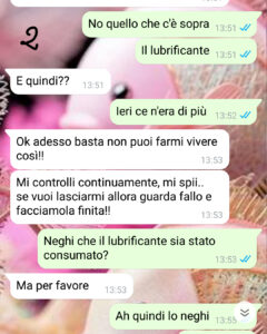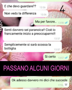 “Care SpunteBlu, all’inizio credevo di essere diventata matta.. davvero!! Lui mi diceva che sognavo, che non era vero niente.. e che mi immaginavo le cose insomma!! Mi sembrava di vivere in un film in cui quello che capita non è del tutto reale ma te lo stai immaginando.. però è anche vero che molto di quello che io vedevo e mi faceva sospettate erano prove molto deboli.. e lo ammetto molto era anche solo pura sensazione che ci fosse qualcosa di storto, qualcosa che non andava.. cioè il suo comportamento, il suo atteggiamento addirittura che non era del tutto normale.. insomma una moglie ste cose le sente e si fa delle domande e ecco!!