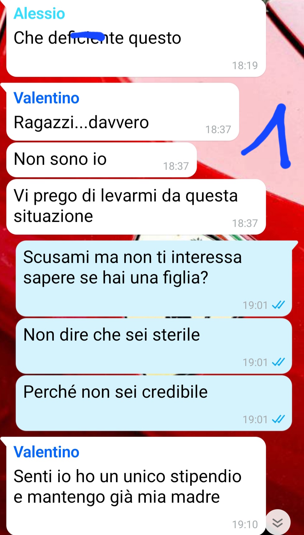 “Non avrei mai pensato di andare a finire in una situazione del genere…e da uomo posso dire di essermi sentito a disagio per Stella…perché sembrava davvero che la responsabilità di questa gravidanza fosse soltanto la sua…vedere tutti questi ragazzi scaricare tutto su di lei mi ha fatto veramente intristire … pensare a una ragazza sola che deve crescere sua figlia e riceve anche questo trattamento, è stato brutto davvero. Non avevo mai pensato neanche lontanamente ai figli prima di questo periodo…non mi ero mai chiesto se sarei diventato padre un giorno. In questa situazione, però, ho cominciato a farmi delle domande. Anche io sono cresciuto senza padre, quello che chiamo “papà ” è il compagno storico di mia madre ma spesso penso a come sarebbe stata la mia vita se mio padre non fosse sparito nel nulla e penso che nessuno dovrebbe crescere così…nessuno merita di essere abbandonato….”