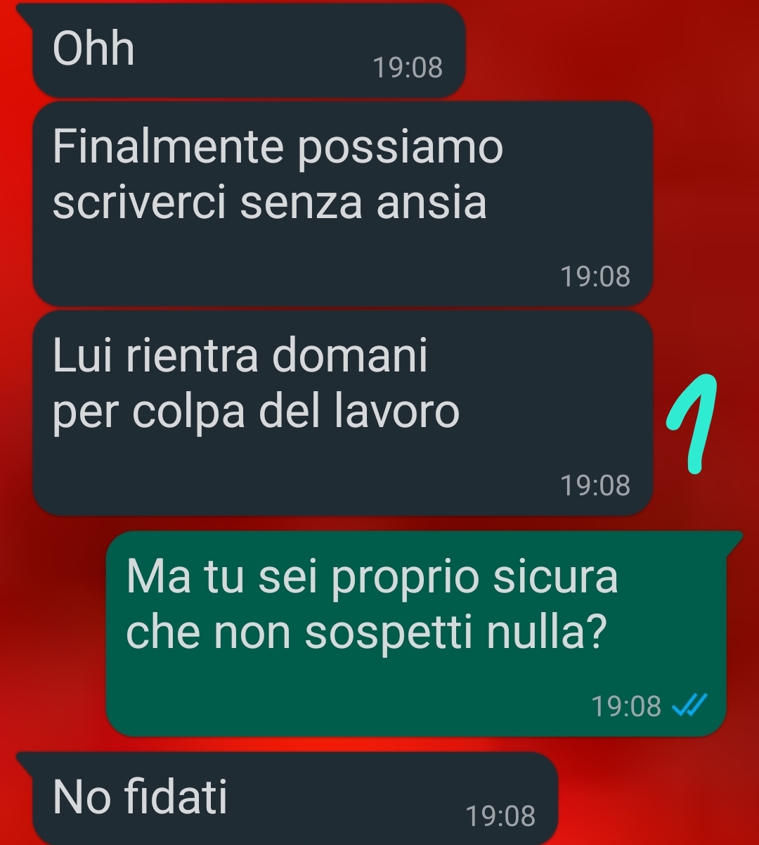 “Ho scoperto il tradimento per caso. Non un rossetto sulla camicia, non un messaggio lasciato aperto per sbaglio. È stato un dettaglio tecnico, una sincronizzazione automatica che non doveva esserci e che invece ha fatto comparire sul mio schermo una conversazione che non avrei mai dovuto leggere. All’inizio ho pensato di aver capito male. Ho riletto tre volte. Poi ho capito che non c’era nessun equivoco. Non era una battuta, non era un flirt innocente. Era organizzazione. Era desiderio. Era attesa. Non ho fatto scenate. Non ho urlato. Non le ho chiesto spiegazioni. Ho fatto una cosa molto più semplice e molto più fredda: ho cambiato il numero dell’amante con il mio, salvandolo con il suo nome. Il suo vero numero l’ho messo altrove. Lei non si è accorta di nulla. Ha continuato a scrivere, a progettare, a raccontarsi. Volevo vedere fin dove arrivava e volevo leggere tutto con tanto di prove. E soprattutto volevo capire se fosse solo un errore… o se io fossi stato l’unico a non sapere da quanto tempo andava avanti.”
