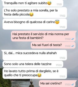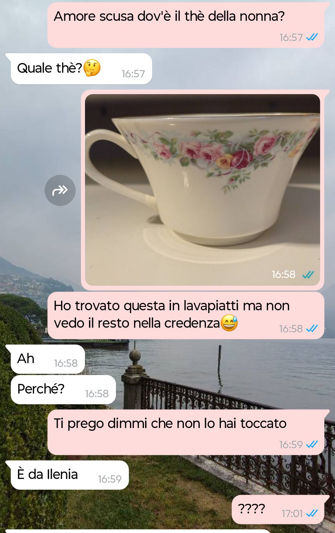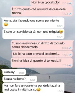 Senza chiedermi nulla, come se fosse una tazza qualsiasi comprata all’Ikea. Quando gli ho fatto notare la gravità della cosa, mi ha riso in faccia e detto che erano solo delle tazzine. Ecco, no: valeva più di qualunque cosa in quella casa. Perché era memoria, rispetto, fiducia.