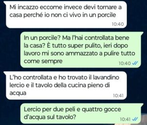 “Ciao Spunte Blu, mi chiamo Lorenzo e ho 40 anni. Un mese fa ho iniziato a convivere con la mia ragazza con cui sto da un anno. Bene, per chi si accinge a fare questo passo vi dico subito fermatevi amici e valutate bene la cosa perché anche se vi sembra tutto rose e fiori tra voi ricordatevi che essere fidanzati è una cosa ma andare a convivere con la persona è proprio tutt’altra cosa, un altro mondo, un mondo che potrebbe trasformarsi anche in un inferno per voi proprio come è successo a me, che dopo solo un mese di convivenza penso di essere decisamente arrivato al capolinea con la mia ragazza. Un mese di convivenza ha distrutto un anno di storia ma oggi posso dire di non aver mai capito nulla di com’era veramente fatta lei, delle sue regole domestiche come le chiama e dei suoi patti da matta schizzata. È proprio vero che una persona non la conosci veramente se prima non ci vai a convivere ma state attenti a quello che fate, pensateci e ripensateci su cento volte. Guardate quello che è successo a me a far venire la mia ragazza a casa mia”