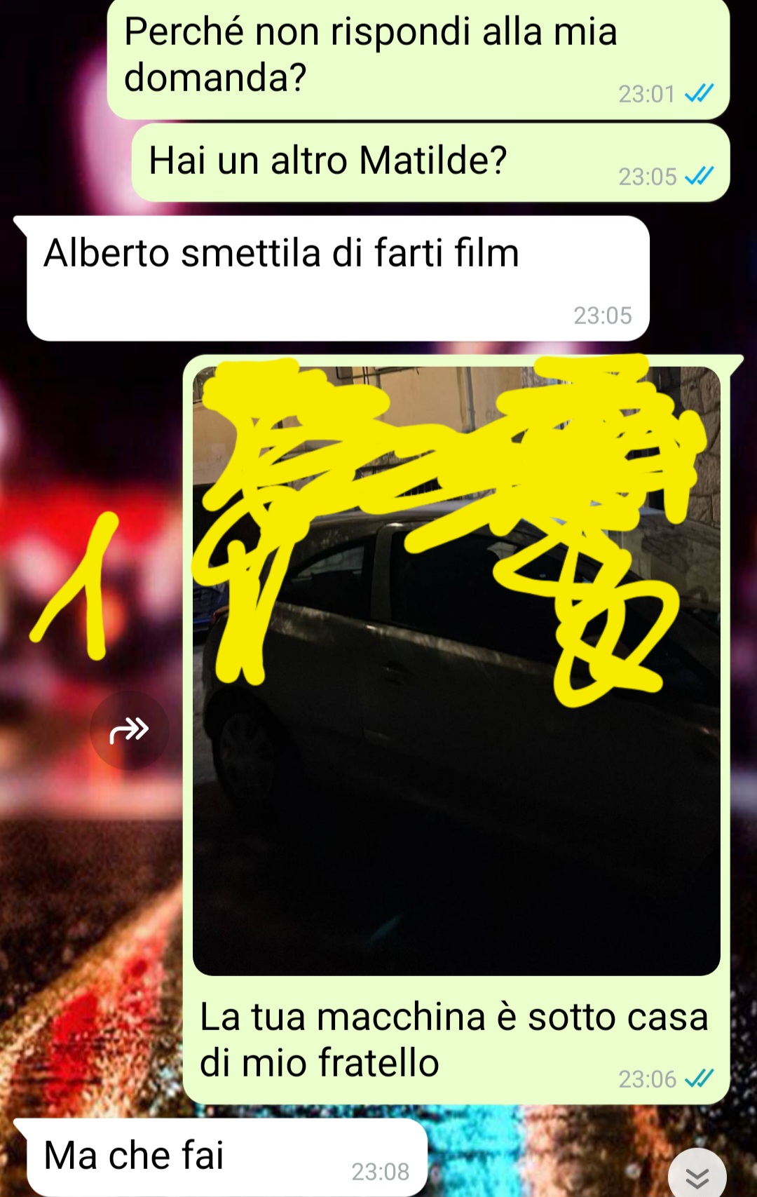 “Matilde stava facendo di tutto per farmi tirare fuori la parte peggiore di me e screditarmi agli occhi delle mie bambine. Ogni secondo pensavo a quanto era assurdo che le cose stessero andando in maniera così folle, a quanto poco conoscevo Matilde, quando invece credevo che per me lei fosse un libro aperto. Ero disperato e stavo affrontando tutto da solo senza il minimo supporto da parte di nessuno. Finalmente capivo quei padri che si ritrovano soli dopo la separazione, e passano per i mostri della situazione.  Ho fatto un singolo errore che non ha avuto conseguenze sulle bambine eppure mi sono ritrovato ad essere etichettato come il peggiore dei padri. Era evidente che sotto a tutto questo caos ci fosse qualcosa di molto più profondo e quindi ho deciso di capire che cosa stava accadendo…ho seguito Matilde per vedere dove andava quella sera e ho scoperto una realtà ancora più tremenda di quella che si era configurata fino a quel momento…”