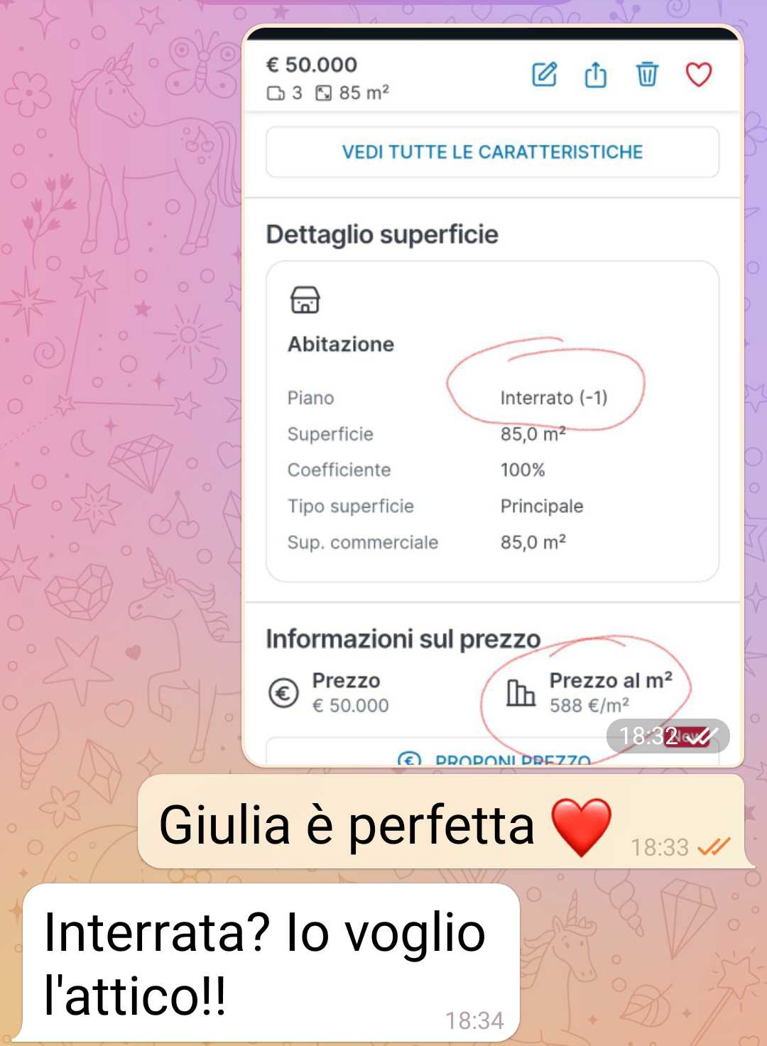 Ma 50 mila possono essere una cifra astronomica se c’è l’amore e un po’ di fantasia. Anche un piano interrato può essere una bella casetta. Io lo so. Io ci credo, che si possa essere felici anche a -1.
