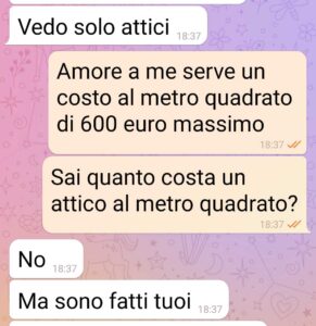 La mia ragazza vuole l’attico, è il suo sogno. Che allocco, pensavo di essere io il suo sogno…”