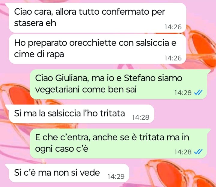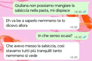 “Salve Spunte Blu, se volete davvero leggere una conversazione ridicola al punto da ammazzarvi dal ridere allora direi che dovete proprio leggere quello che vi ho appena mandato perché penso che quanto successo oggi pomeriggio con una mia amica sia davvero una roba di un tragicomico mortale. Che poi io la chiamo amica ma in realtà ci conosciamo da appena due anni e la vera amica non è lei, nel senso che io e Stefano (il mio ragazzo) in verità nasciamo come amici del suo compagno. Purtroppo appunto quest’ultimo da due anni in qua ha deciso di accompagnarsi a questa donna per cui ho davvero finito tutte le parole per descriverla. Leggete come se n’è uscita oggi lei in chat con me e penso proprio che non ci sia bisogno di aggiungere altro per restare scioccati già dai primissimi messaggi che ho ricevuto da parte sua”