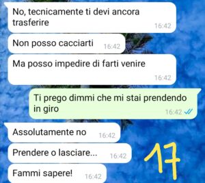 Leggi le ultime storie Natale vegano Il contratto La storia di Leandro Tu non vieni Fidati di me Capodanno a Londra Il problema della richiesta Stipendi a confronto Per magia Prenotarsi A te e famiglia Fidanzata Sentenza L’amica ghostata Da amici Il cuculo Il Natale Nessuna obiezione Il colloquio conoscitivo Vuoi sposarmi?