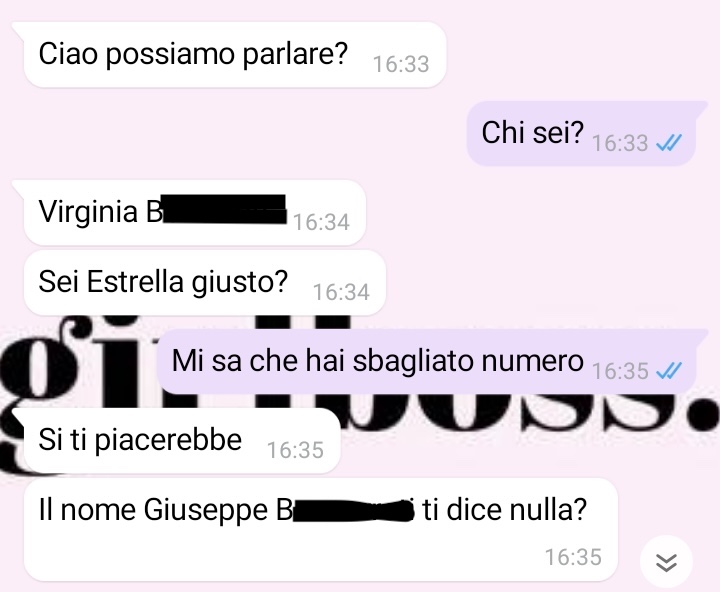 Due settimane dopo mi scrive sua figlia. Vi lascio leggere la conversazione. Che pena. Ma soprattutto… povero Pino.”