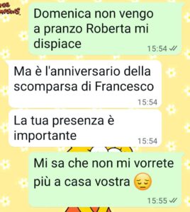 Roberta – la sorella di Francesco – la considera ancora parte della famiglia.