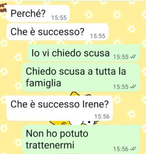 Irene ha perso il marito Francesco alcuni anni fa. Dopo questa scomparsa, è comunque rimasta legata alla famiglia di lui come se fosse ancora tutto com’era prima: le feste, i pranzi, gli abbracci, l’affetto sincero.