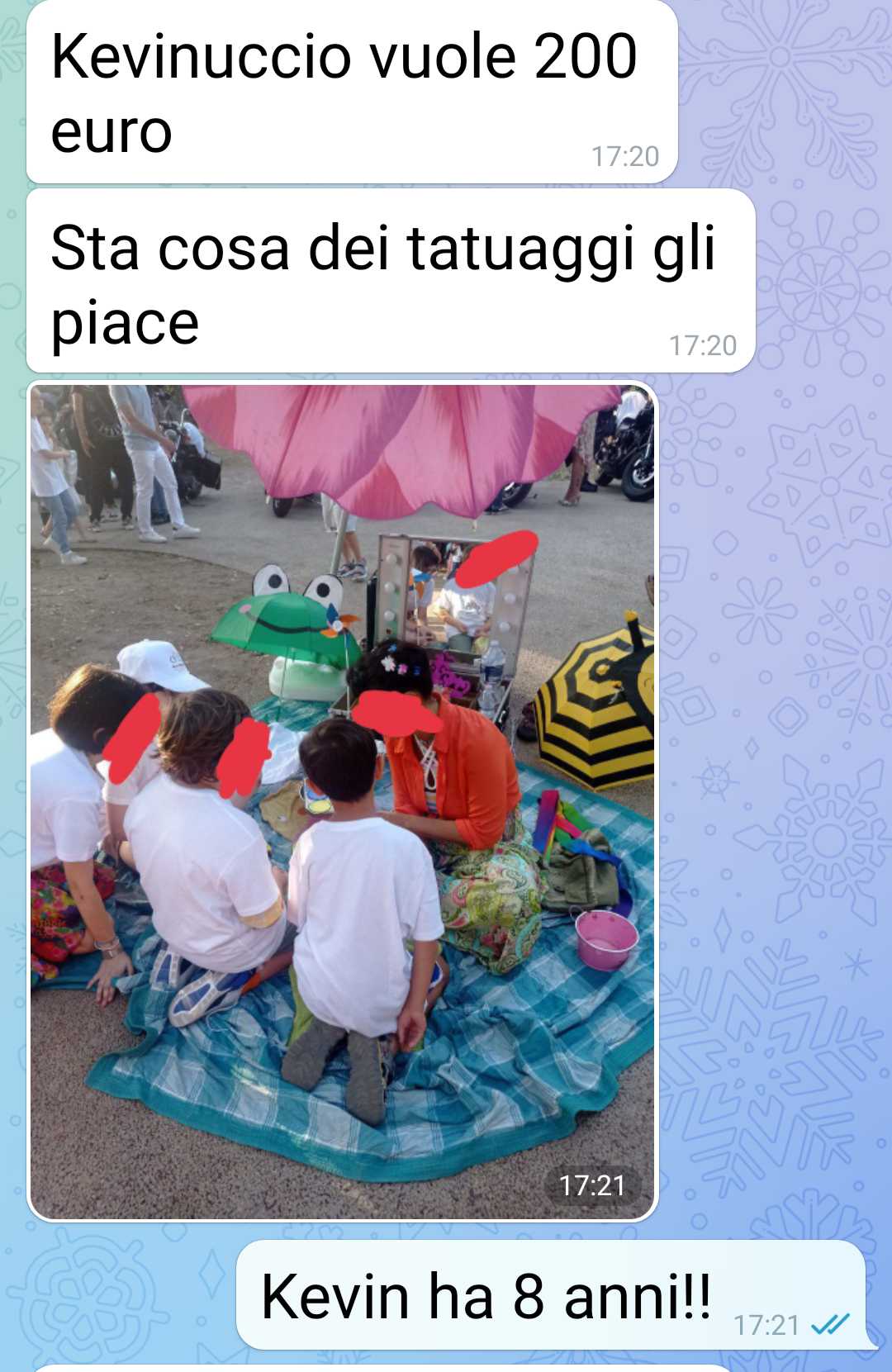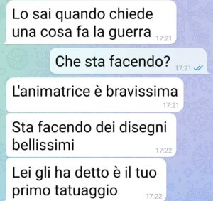 Essere genitore non è facile che ti devi scontrare con le mode del momento. A mio figlio Kevin è venuta la passione per i tatuaggi. Ma la colpa come vedete dalla chat è di mia moglie. Ora quello si vuole fare una cosa sulla spalla.