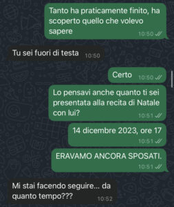 “Avevo un brutto presentimento e ho deciso di non fermarmi, ma anzi, di cercare risposte. Mi sono anche fatto aiutare da una persona speciale e vi giuro: non ero pronto a quello che stavo per scoprire. È tutto molto peggio del previsto e non capisco più con chi io sia stato sposato per 15 anni. È vero che le persone, in fondo, non si conoscono mai davvero.