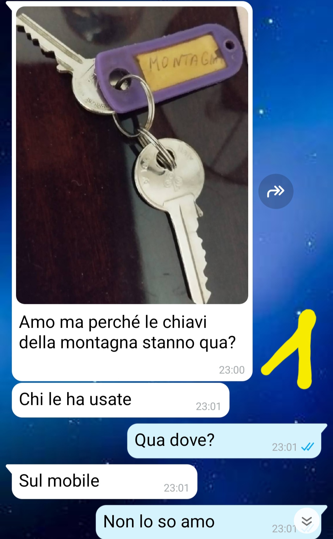 “Ciao spunteblu come state? Io mi chiamo Andrea e sono davvero in un casino enorme.  Non ho paura che le chat escano perché tanto le persone coinvolte non usano Facebook da anni. Io vi seguo sempre e adesso che sto vivendo questo caos ho pensato subito a voi. Sono sposato con Caterina da 4 anni e la amo tantissimo. Sinceramente non pensavo che si potesse amare tanto una persona anche dopo anni e anni. Stiamo insieme da 10 e sposati da 4, eppure è sempre tutto bellissimo. Solo che ora ho un problema. Un problema enorme e vi giuro mi sento davvero un verme per quello che sta succedendo…il senso di colpa mi logora. Stavo da Paolo, uno dei miei migliori amici e mi ha scritto Caterina…aveva trovato le chiavi della casa in montagna fuori posto….