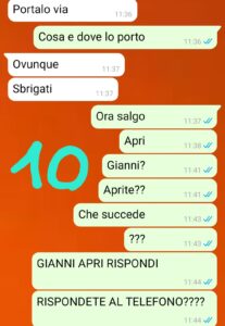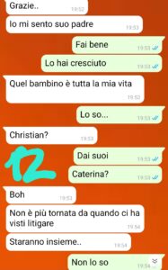 “Caterina è arrivata a casa e mi ha trovato fuori dalla porta, ha aperto con le chiavi e Christian e Gianni stavano litigando. Mia sorella se ne è andata subito e io ho immediatamente portato via Sandrino, e l’ho riaccompagnato a casa un’ora dopo. Caterina non c’era, Christian mi ha portato a casa e ha iniziato a prendere le sue cose. Pensavo solo a come potesse sentirsi Gianni…e allora gli ho scritto e ho avuto anche un’idea…”