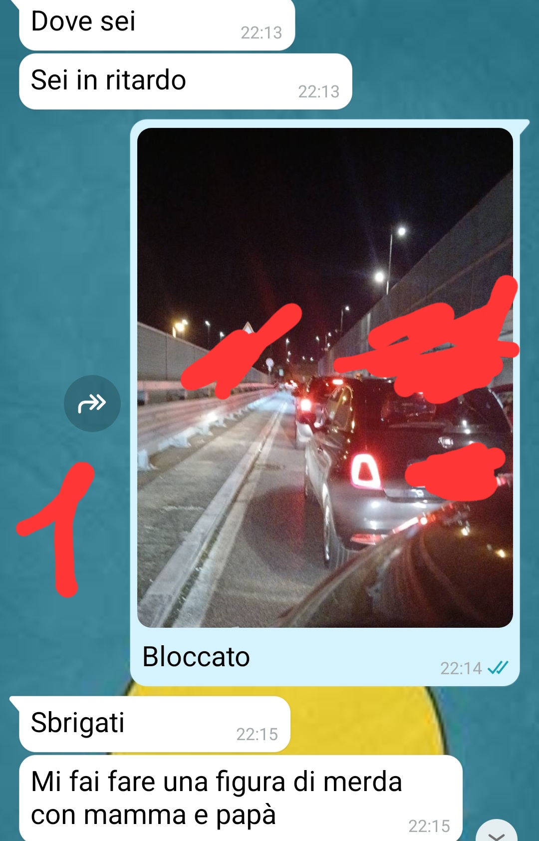 “Buongiorno mi chiamo Daniele e sono appena passato da: ” Sto per conoscere i miei suoceri” a…single. Ebbene sì, ragazzi, dopo questa conversazione ( in allegato) la mia ragazza mi ha lasciato. Ci siamo frequentati per 7 mesi e sembrava tutto splendido. Certo, lei ha un carattere forte e discutevamo spesso ma quasi mi piaceva litigare con lei perché in qualche modo poi le nostre discussioni portavano sempre a un miglioramento per la relazione. Imparavamo dai nostri errori. Almeno così sembrava. Poi mi ha chiesto di conoscere i suoi. Io sono stato subito contento e le ho proposto di organizzare un pranzo ma lei ha insistito per la cena, perché la riteneva più adatta alle presentazioni ufficiali ( bah). Io però lavoro ogni giorno fino alle 21.30 ( se va bene) e quindi ovviamente avrei potuto partecipare solo di sabato o domenica oppure dopo le 21.30 ( quindi almeno alle 22). Lei ha organizzato la cena di venerdì, e mi ha messo una pressione incredibile…il risultato lo leggete negli screenshot.”