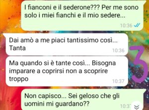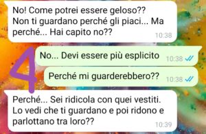 Dopo un paio di mesi decidiamo di presentarci ai reciproci gruppi di amici. Ma quando si avvicina la cena con i suoi amici…lui mi manda questo messaggio e succede tutto quello che leggerete…non aggiungo altro, lascio a voi i commenti… spero che questa storia possa aiutare qualcuno come me, lá fuori…peace and love!!”