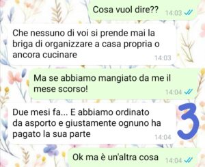 Faccio parte di un gruppo di amici che si conosce da diverso tempo e organizza spesso cose insieme tra le quali alcune cene.