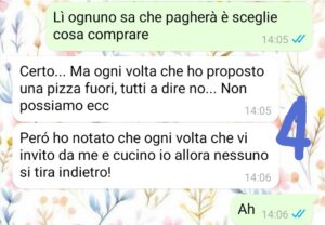 Faccio parte di un gruppo di amici che si conosce da diverso tempo e organizza spesso cose insieme tra le quali alcune cene.
