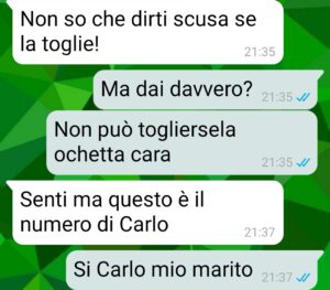 E invece stavolta qualcuno ha risposto. Mio marito era sotto la doccia e il telefono ha vibrato quindi mi è venuta un’idea semplicissima: rispondere io.