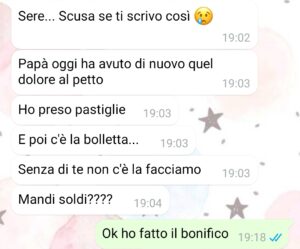Non volevo fare scene davanti a mia figlia, volevo solo capire perché, quando serve amore, spariscono… ma quando serve un bonifico, mi trovano sempre. Sì, perché io ai loro occhi sono solo quello: un bancomat. Ma da quel giorno ho detto basta, mi hanno mancato di rispetto e quello che è peggio hanno mancato di rispetto a mia figlia. Le hanno negato una presenza, negato un amore, e io non sono disposta ad accettarlo. Hanno fatto una cosa orribile.”