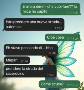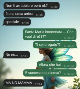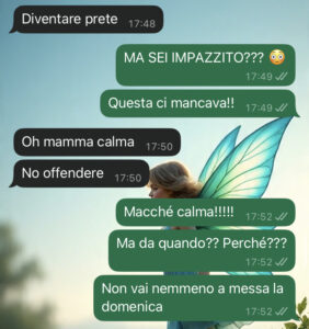 Vi lascio la chat qui sotto… ditemi voi se sono io a sbagliare o se davvero sto perdendo la pazienza per un motivo valido! Che devo fare con questo figlio??”