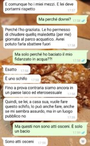 “Pensavo che certe cose appartenessero al passato. Non perché il mondo sia perfetto, ma perché mi ero convinto che almeno alcuni limiti fossero stati superati. Che ci fosse una base minima di rispetto, di libertà, di normalità. E invece basta un attimo per renderti conto che non è così. Che esistono ancora persone che guardano, giudicano, decidono cosa è giusto e cosa non lo è sulla base di idee ferme a decenni fa. Io non ho mai fatto della mia vita privata una battaglia pubblica. Non sento il bisogno di dimostrare nulla, né di provocare. Vivo, semplicemente. Amo, come chiunque altro. E per me dovrebbe bastare questo. Dovrebbe essere la cosa più normale del mondo. E invece no. Perché ancora oggi c’è chi si sente autorizzato a trasformare qualcosa di umano, di naturale, in qualcosa da condannare. Sono un uomo, ho un compagno, da anni, e come detto, non ostentiamo nulla. Ma ogni tanto, capita, che ci diamo qualche bacio in pubblico, come è successo quel giorno all’acquapark. Che male c’è? Chiedetelo a questo tizio…”