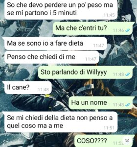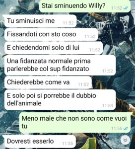 “Penso che con questa mia storia riuscirò ad attirare favori e malumori di parecchie persone considerando che parla, essenzialmente, di animali domestici. Un argomento caldo e sensibile per come lo sono anche io, ma che noto porta spesso le persone, come il mio ragazzo, a comportarsi con menefreghismo o uscendosene con quelle frasi orribili come il fatto che non sono esseri umani e quindi non importa se succede una determinata cosa. Io sono di quelle che preferisce gli animali alle persone e che, fosse per me, non avrei proprio un fidanzato e mi terrei il mio cucciolo, soprattutto se poi si deve comportare in un modo così brutto. Fatto sta che io sono andata a vivere momentaneamente in un’altra città per via del mio lavoro. Devo svolgere delle cose che non sto a spiegarvi, anche perché non c’entra nulla con la mia chat, per un paio di mesi e vivo qui da un mese ormai. Manca poco al mio ritorno a casa, ma non ho potuto portare con me Willy, il mio cagnolino adorato e ho avuto la pessima pensata di lasciarlo al mio ragazzo al posto di darlo a mia sorella. Ora mi rendo conto che non è stata una grande idea.”