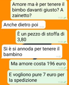 “Mia moglie mi ha linkato una fascia portabebè da comprare che costa 200 euro. Se iniziamo così crescere un figlio sarà un vero dissanguamento.