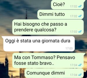“Come si spiegano certe cose a tuo figlio di sei anni? Come si spiega a tuo figlio di sei anni neanche compiuti che ora la famiglia è composta solo da lui, da me il suo papà e dai nonni? Non si riesce.. Io non riesco, magari per alcuni sarebbe più facile, ma per me no. Porto mio figlio dalla nonna materna Antonella, santa suocera e santa nonna, prima di andare al lavoro e poi me lo vado a riprendere quando esco dall’ufficio. Siamo solo io e lui. E Antonella. Bisogna cavarsela. Anche se è dura. A settembre inizierà le elementari e mi preparo già da ora alle mille domande che i compagnetti di scuola gli faranno e che lui riporterà a me e io rimarrò spiazzato. Ma Antonella dice che i bambini interpretano, a modo loro, i fatti e ciò che noi diciamo loro. E sono sereni, felici, perché hanno le loro convinzioni di bambini e nessuno gliele può togliere. Nel frattempo voglio condividere questo primo evento con voi: Tommaso ha perso il suo primo dente da latte e, come dice Antonella, ha interpretato tutto a modo suo..”