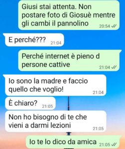 “Una mia amica posta sempre foto del suo bambino in momenti inopportuni. Le ho fatto notare la cosa, ma mi sono presa un sacco di insulti.