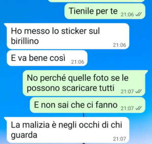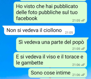 Soprattutto per le immagini di bambini, questa cosa può essere pericolosa. Ci sono tante persone malintenzionate purtroppo. Non solo le mamme del pilates che non hai tra gli amici. Le dicevo questo alla mia amica… cioè qualcuno glielo doveva dire. Io mi sentivo troppo in colpa a vedere quelle foto e a starmene zitta. Non sono una impicciona ma qui lei pubblica sempre contenuti privati anche di lei stessa. Ok che per molte la maternità è la cosa più bella del mondo, ma non c’è bisogno che il malavitoso di non so dove metta le mani su cose così intime!”