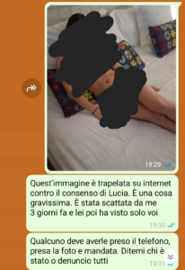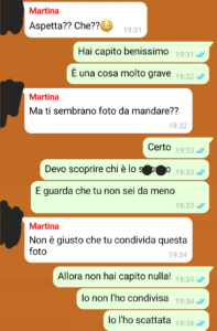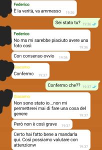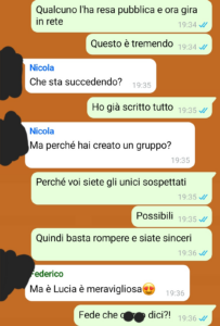 “Alla mia fidanzata è successa una cosa veramente gravissima. E se sono qui a denunciare il fatto, nonostante le critiche che ho ricevuto in merito da amici e parenti anche stretti, è proprio perché penso che, quando ci sono problemi così gravi, qualcuno deve avere il coraggio di metterci la faccia. Sono stato avventato? Avrei potuto reagire e agire diversamente? Forse. Ma non è questo il punto. Io sono convinto che quando una persona mette tutto sé stesso per proteggere chi ama, non può e non deve essere criticato, anche se magari utilizza metodi parzialmente discutibili, è il gesto che deve essere premiato, perché non è da tutti, anzi. Detto questo, la vicenda, di base, è semplice. Pochi giorni fa, insieme a Lucia, la donna di cui vi parlavo, scopro che una sua foto, molto intima e da me scattata col suo telefono, era trapelata su internet. Lei sconvolta, potete immaginarlo da soli, io furibondo. Ma perché furibondo? Perché io non ero stato e la foto era recente, perciò solo le poche persone che aveva incontrato in quei pochi giorni potevano essere state. Mi sono ingegnato subito per scoprire il colpevole.”
