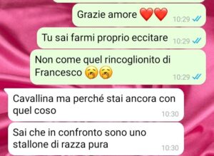 Non saprei nemmeno da dove iniziare, ad essere completamente sincera. Mi chiamo Giulia, ho 28 anni e ho tradito il mio ragazzo per otto mesi. So bene che ora verrò giudicata, condannata e aditata come una “poco di buono”, lo so, e di questo non posso lamentarmi. Ho fatto una grossa cazzata e me ne rendo conto. Però, vi chiedo leggere tutta la conversazione per avere un quadro completo della situazione.