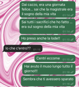 “Ciao Spunte Blu, mi chiamo Beatrice e vi mando questi screen perché sono veramente scioccata. Io e il mio fidanzato stiamo insieme da cinque anni e mezzo e sembrava che tutto andasse bene, anzi, benissimo.