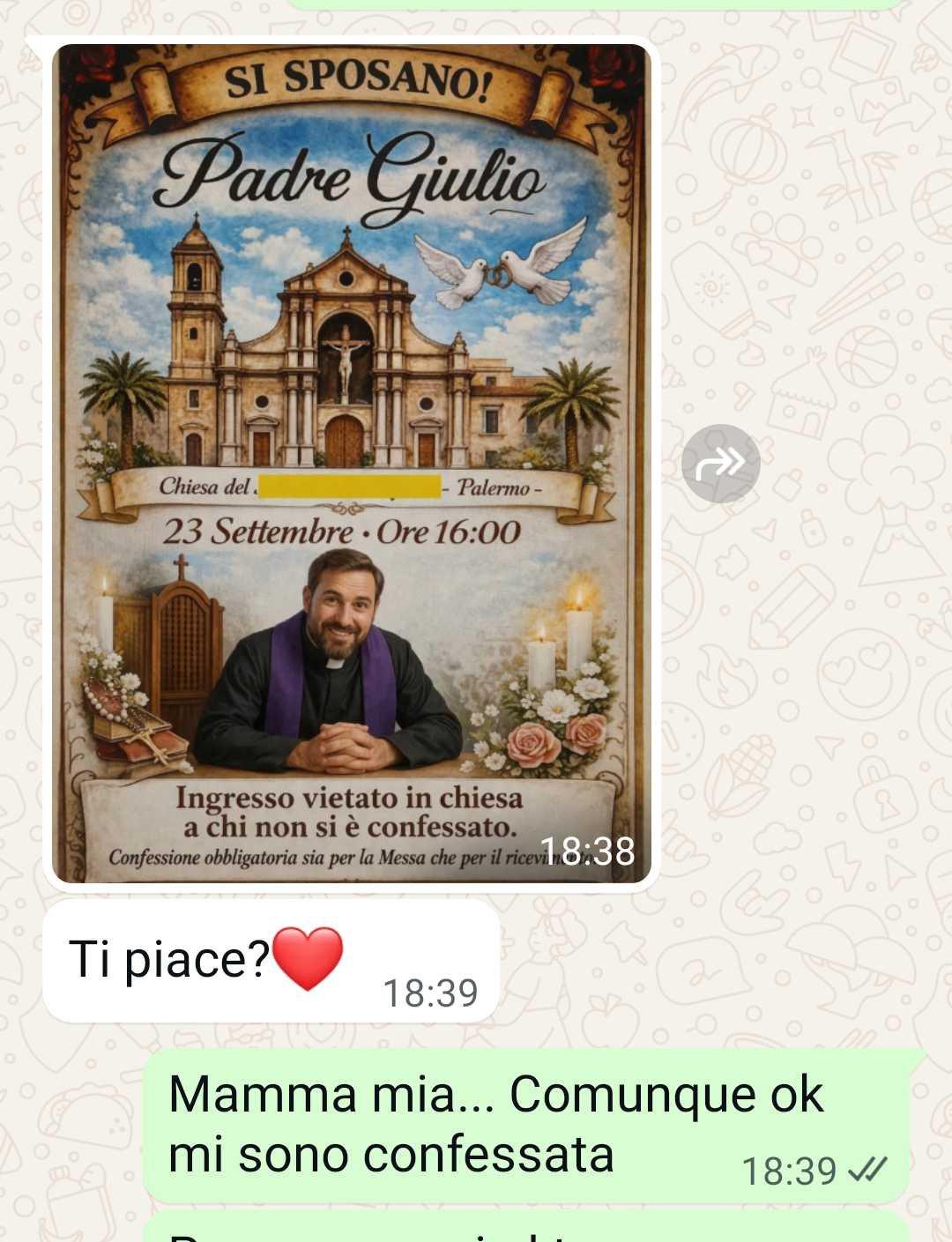 “Mia sorella si sposa e vuole obbligare tutti a confessarsi per entrare in chiesa e al ricevimento. Ho trovato una soluzione per avere capre e cavoli.