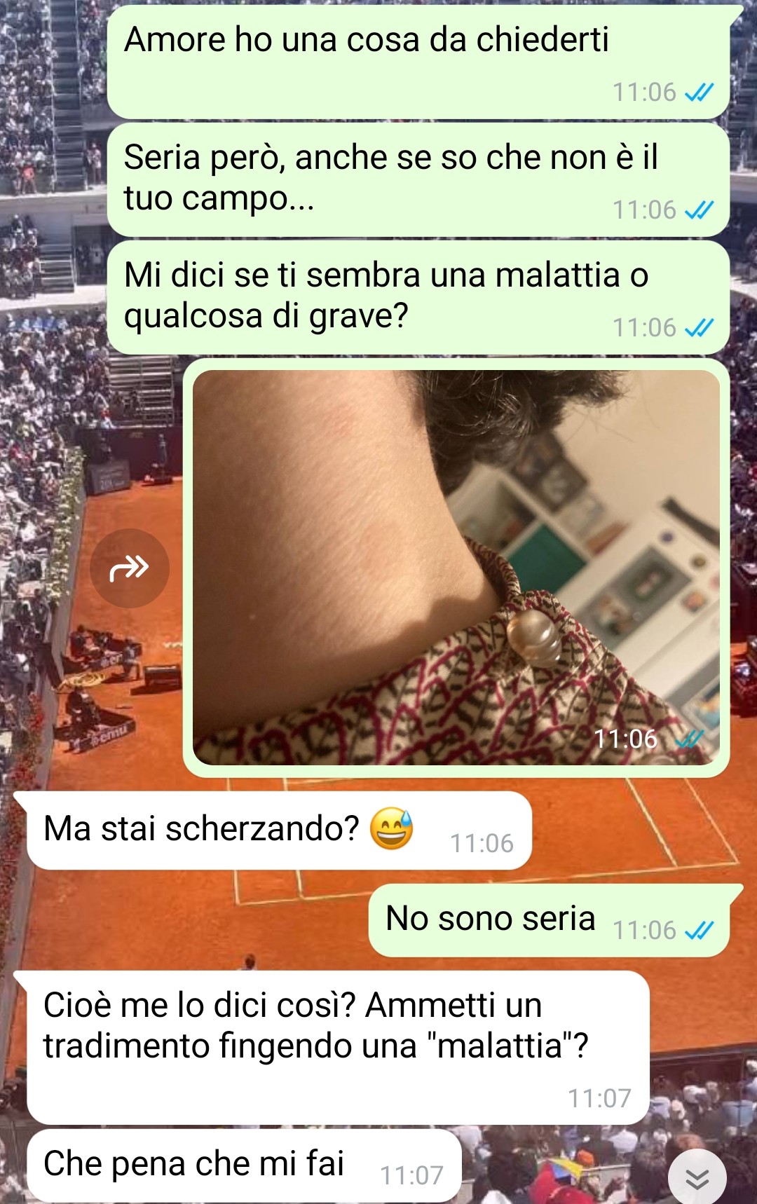 “La gelosia non è amore. È insicurezza travestita da passione, controllo mascherato da attenzione. È il bisogno disperato di conferme, di prove continue, come se l’affetto si misurasse con gli interrogatori. Tutti possiamo provarla. È umana. Ma ciò che distingue un sentimento sano da uno tossico è COME scegliamo di viverla. C’è chi la riconosce e la affronta con maturità, e c’è chi la trasforma in un’arma per ferire, per accusare, per distruggere. La gelosia cieca non chiede chiarimenti, sentenzia. Non ascolta spiegazioni, suppone. E peggio ancora: si aggrappa alle sue paure come se fossero certezze, e affoga chi ha di fronte in un mare di insulti, dubbi e paranoie. Alla fine, non protegge nulla. Anzi, spesso spinge proprio chi amiamo ad allontanarsi. Stavo male, da qualche ora, quasi da due giorni in realtà, avevo una strana macchia sul collo e non sapevo proprio cosa fosse ma mi prudeva e mi faceva male. Avevo sentito mia mamma, stavo per sentire il medico, e giustamente ho scritto anche al mio fidanzato perché doveva saperlo. Ma non ha reagito come avrei sperato.”