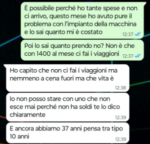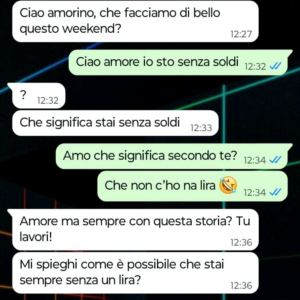 “Ciao Spunte Blu vi faccio subito la domanda diretta: secondo voi è giusto lasciare il proprio fidanzato perché non guadagna tanto? Otto mesi fa ho conosciuto quella che poi è diventata la mia ragazza. Io sono innamorato di lei, non lo nascondo però ogni volta che resto senza soldi e purtroppo ultimamente sta capitando spesso, la mia ragazza va in tilt e nella discussione che io e lei abbiamo avuto prima in proposito credo che lei abbia superato veramente ogni limite della sopportazione possibile. Ve lo confesso mi ha portato ad un punto di non ritorno, qualcosa che io non posso proprio sopportare. In poche parole la mia ragazza prima mi ha minacciato di lasciarmi per le mie scarse finanze e poi se n’è anche venuta fuori con una proposta paranormale che io non mi sarei mai sognato di fare nemmeno al mio peggior nemico. Se vi va leggete pure quello che lei mi ha scritto e resterete senza parole come sono rimasto io. Vi rendete conto con chi mi sono messo e sono rimasto per ben otto mesi? Questa ragazza è un mostro di persona, non ho nessun dubbio ormai.”