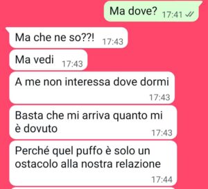 Leggi le ultime storie La mia regina – Parte 2 Il braccio rotto Torna a casa Priorità familiari Emma Cane abbandonato I social controllati dall’ex Il bonifico segreto – Parte finale La porta a soffietto Rolex a rate Il messaggio cancellato Il grafico Un regalo Tradimenti ripetuti Il bonifico segreto Uno sfizio Lavoro all’estero Il bimbo abbandonato Il giorno d’aria La nutrizionista