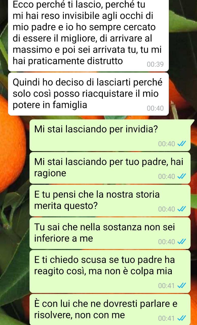 Come sempre, alla mamma sto antipatica e al padre, a quanto pare, sto più che simpatica. Non vi dirò qui perché mi ha lasciato, sarebbe davvero surreale da credere. Leggete questi pochi screen e vi prego di dirmi se vi sembra normale oppure no.